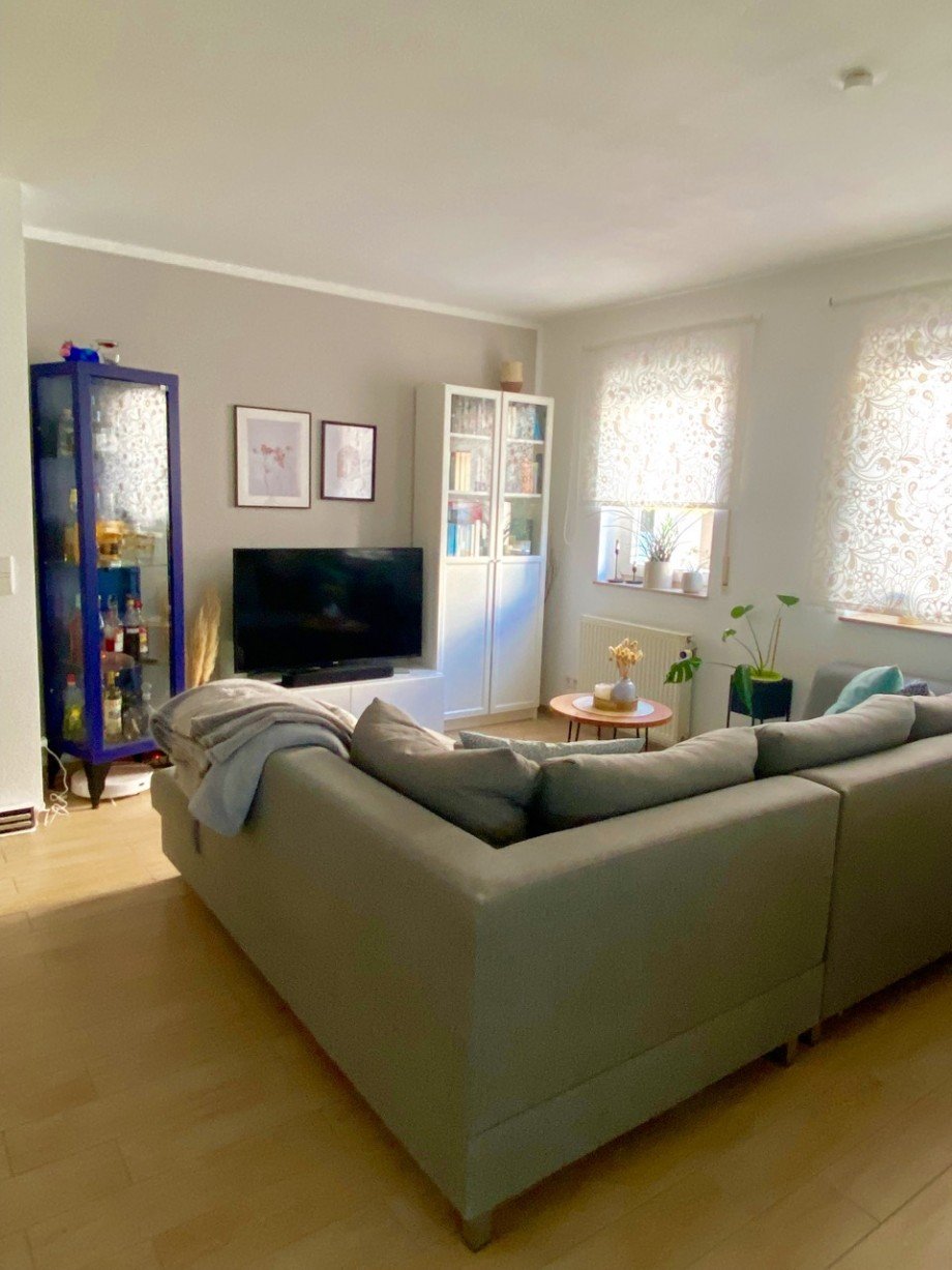 Vom Flur aus rechts gelangen Sie in den großen und offenen Wohn-/ Essbereich (deshalb nicht WG geeignet). Hier findet der neue Mieter eine praktische Einbauküche mit Elektrogeräten und eine Süd Loggia vor.