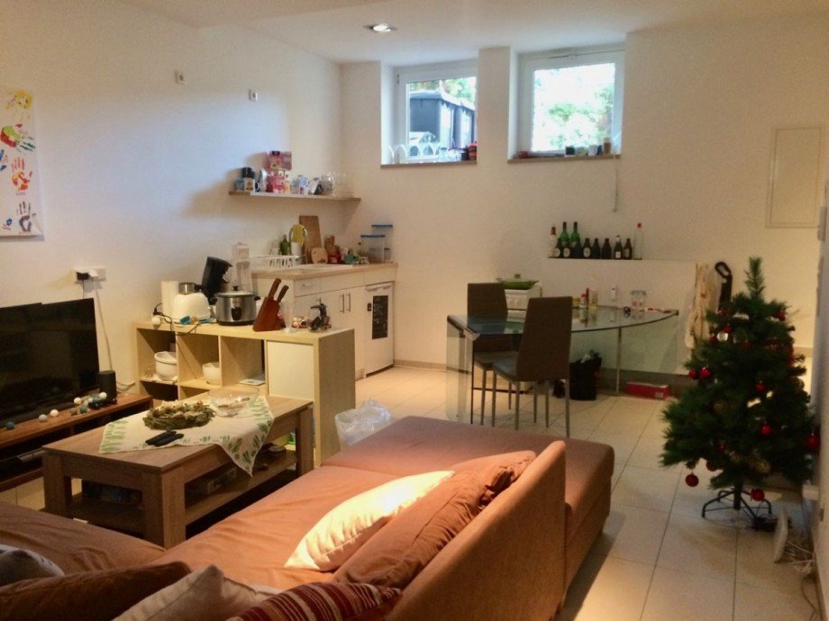 - Küche mit Wohnbereich und Duschbad sind gefliest