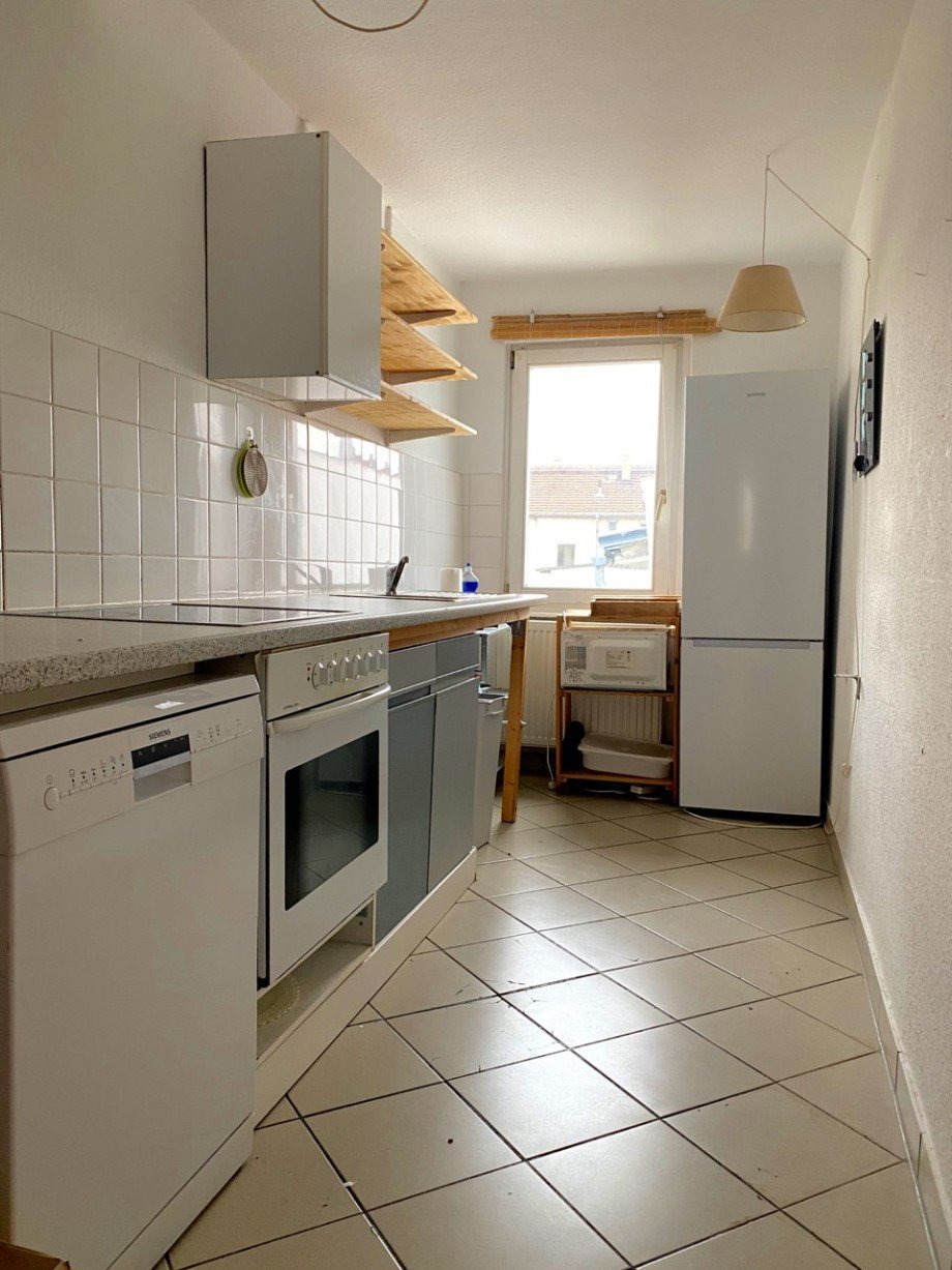 Fast in der Stadtmitte, in einer ruhigen Seitenstr. gelegen, befindet sich unsere großzügige 3 Zimmer Wohnung. Sie verfügt über eine Wohnfläche von ca. 100 qm, welche sich auf zwei geräumige Schlafzimmer, ein großzügiges Wohnzimmer, die Küche mit Einbauküche und dem Tageslichtbad mit Badewanne verteilt. Da alle Zimmer vom Flur aus begehbar sind, ist die Wohnung auch WG - geeignet. Die Wohnung verfügt über Laminat Böden und die abgebildete Einbauküche gehört zur Ausstattung der Wohnung dazu.